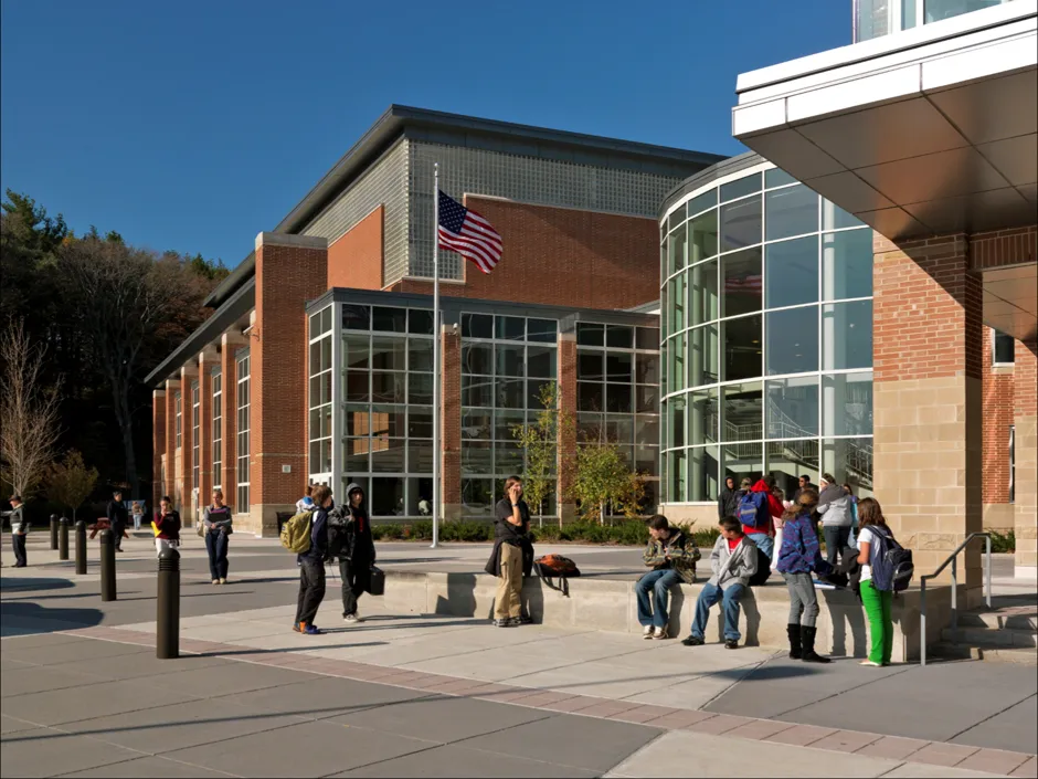 建筑师菲利普·波伊内利说,镇上最初并没有打算将老年中心与高中结合在一起,他是 Symmes Maini & McKee Associates 在剑桥的合伙人。但在规划的早期阶段,当他的团队与官员会面时,他们意识到镇上老年人的需求与青少年的需求恰好重叠。当时,老年中心使用的是一栋小维多利亚风格的房子,远未达到无障碍标准。