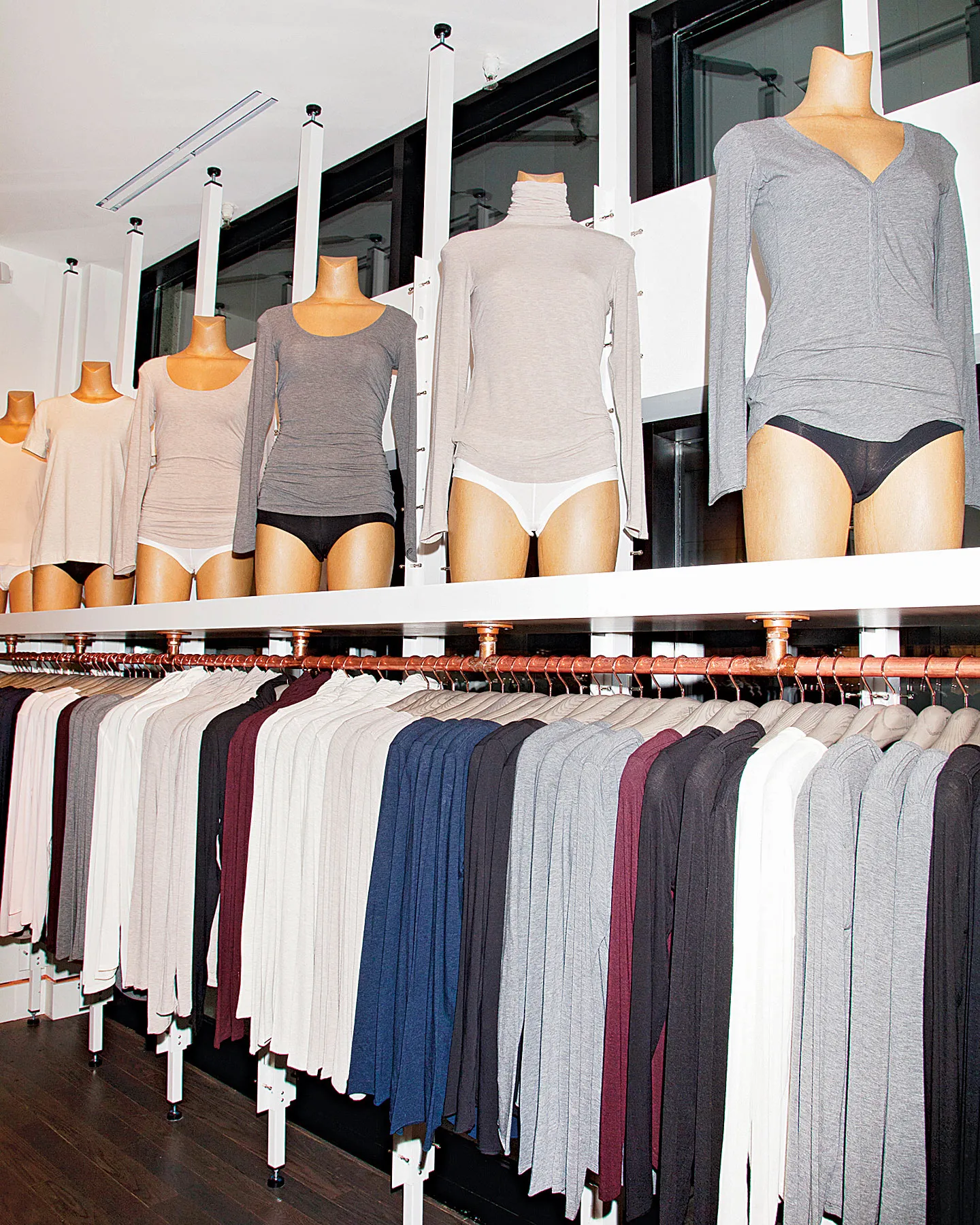 摄影师:Aaron Wynia 为彭博商业周刊JJ指着一块白色霓虹灯标志,悬挂在曼哈顿Nolita的Kit & Ace精品店的白色墙壁上。“时间是宝贵的,”上面写着。时间太宝贵,不能花在干洗店,所以Wilson家的面料是可机洗的。现在有31家商店,JJ为墙壁选择了当地艺术品,为天花板选择了当地照明。两家店内设有咖啡店。四家被称为工作室。一辆铜色的Airstream停在纽约商店外的街道上;它不卖衣服,而是“吸引创意阶层,”Kit & Ace的一位发言人说。这辆名为Copper Studio的Airstream将在这个春天前往澳大利亚,与当地创意人士互动。