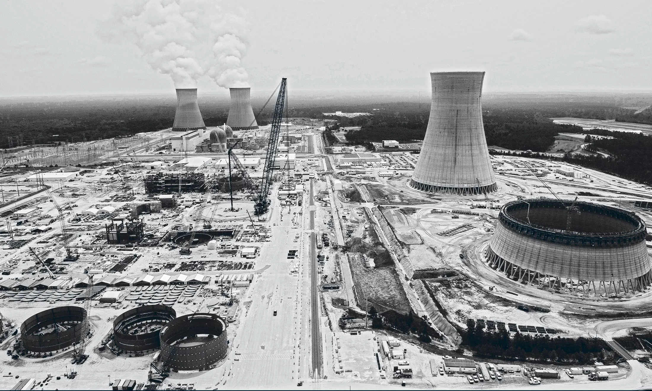 感谢乔治亚电力公司通往阿尔文·W·沃格特发电厂的道路蜿蜒穿过乔治亚的松树林,经过那座巨大的国际纸业工厂,许多树木在这里结束了它们的生命,继续向萨凡纳河前进,萨凡纳河形成了与南卡罗来纳州的边界。在离这里几英里远的地方,55层的钢筋混凝土冷却塔高耸于树梢之上。棉花般的白色蒸汽从塔上升起,希望这是核设施发出的友好、无辐射的问候。