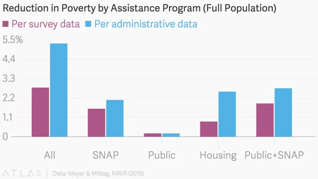 维基共享资源尽管 他们的 问题,政府援助项目对于 住房和 食品通常被 认为是相当有前景的抗击贫困措施。人口普查数据表明了这一点。但一份新的 工作论文通过更广泛的数据集认为,这些援助项目的好处比通常认为的要大得多。以下是报告的主要结论: