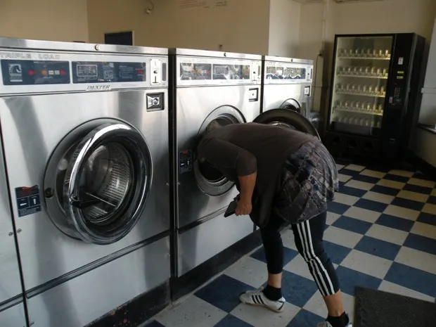 西塞尔·托拉斯在她的一个项目中嗅了一下洗衣机。图片由西塞尔·托拉斯提供在堪萨斯城,托拉斯的任务是识别和重现捕捉城市多样性的气味。因此,托拉斯带领参与者进行了一场 以嗅觉为主的寻宝活动,穿越几个社区,让他们记录那些突出的气味来源——面包店、洗衣店、埃塞俄比亚和海地餐馆,甚至垃圾和体味。