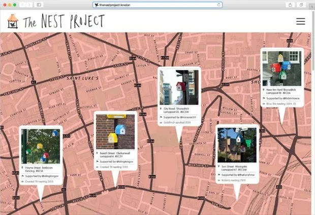 其中一个努力的形式是巢穴项目,由伦敦设计工作室Fieldwork Facility发起。该项目仍处于概念阶段,旨在生产可以轻松附加到城市结构上的彩色鸟屋,如电话杆、路灯和标识。
