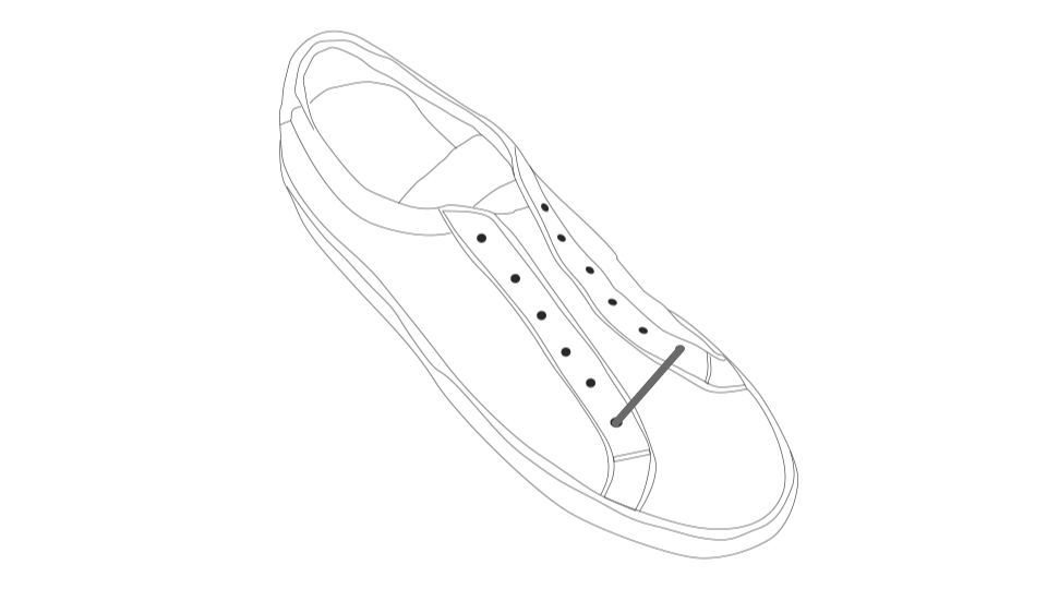 对于运动鞋,你需要一种休闲的系带风格,易于快速收紧和放松,并且能衬托出鞋子的运动感。将鞋带系起来的方式类似于开放式系带鞋,但将鞋带从鞋面的顶部穿过眼孔(而不是内外反穿)。这意味着它们形成的V形指向鞋尖,给人一种更具攻击性的外观。简单,就像它应该是的那样。