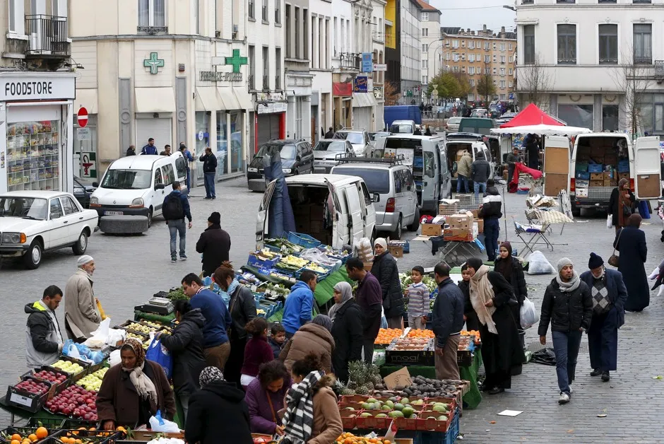 人们在比利时莫伦贝克的市场购物,警方在2015年11月15日巴黎恐怖袭击后进行了突袭。路透社/伊夫·赫尔曼正是一个停车罚单首次将布鲁塞尔的莫伦贝克区推向国际聚光灯。