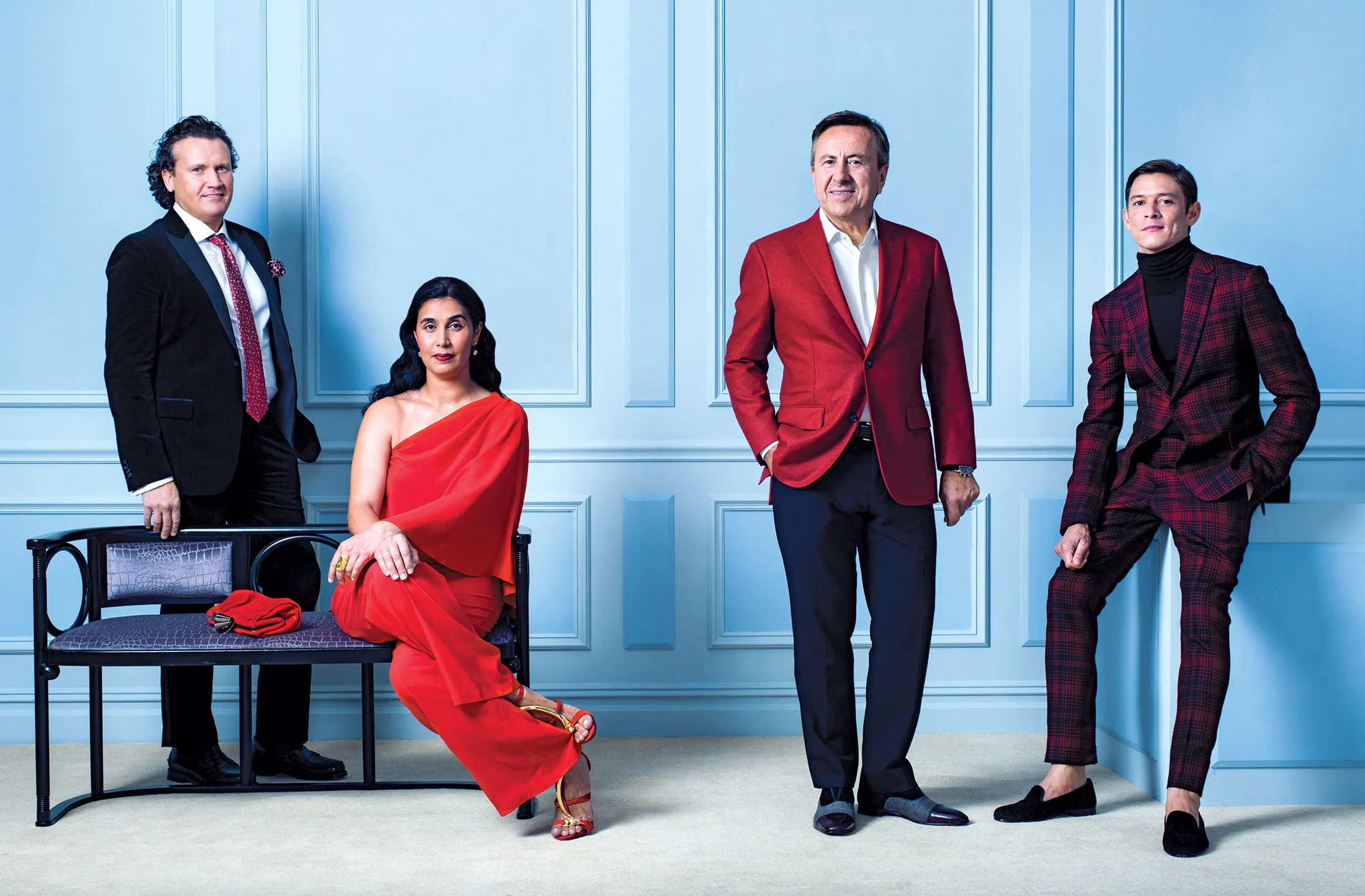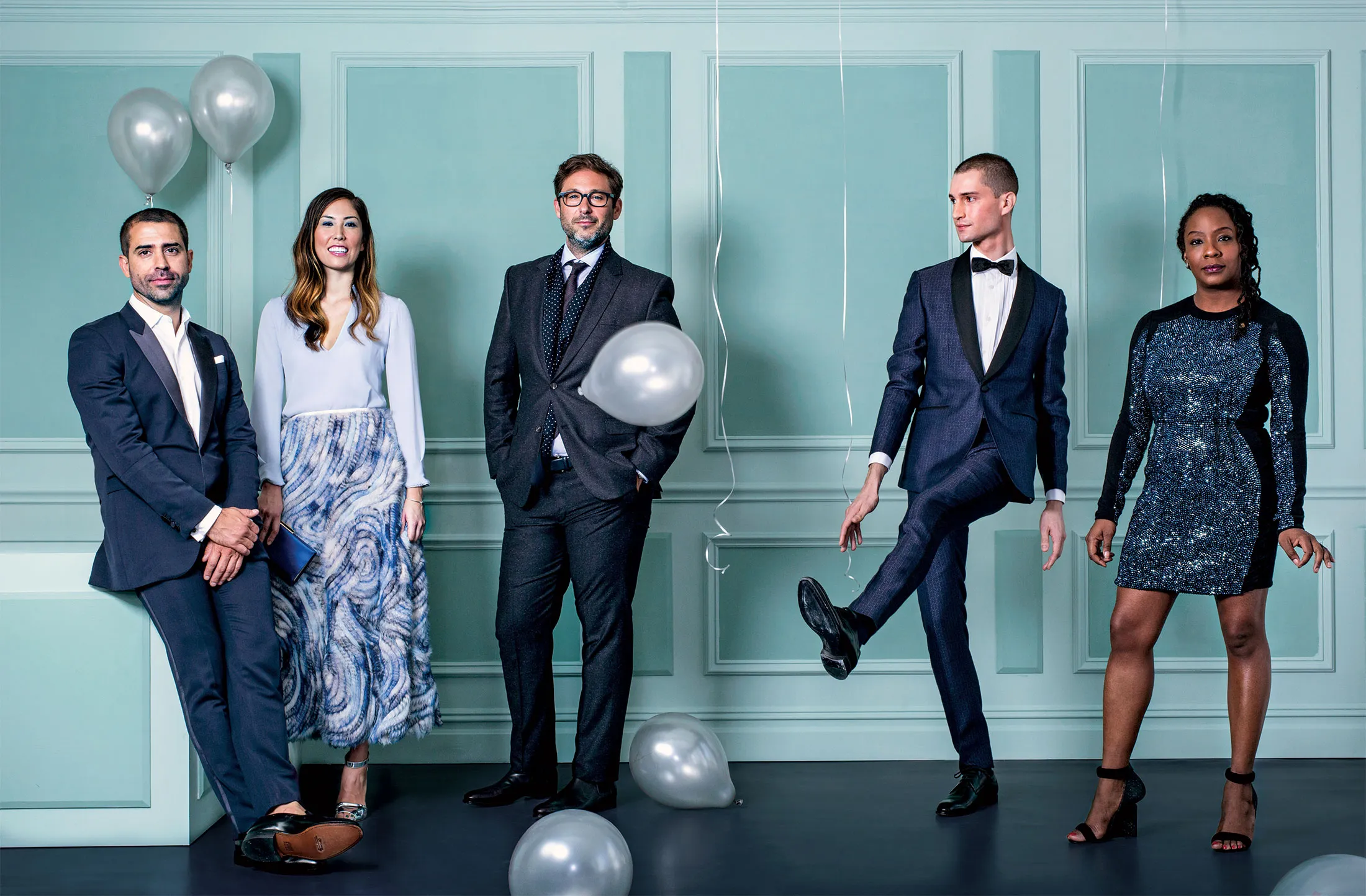 关于比尔·多勒,行政主厨: 帕索里尼西装来自 Boss,795美元;修身衬衫来自 Turnbull & Asser,335美元;吉诺领带来自Reiss,120美元;克雷斯帕口袋巾来自 Reiss,50美元。关于劳伦·德斯特诺,行政主厨: 连体裤来自 Lanvin,2590美元;手链来自 Kendra Scott,125美元。关于迈克尔·怀特,主厨及Altamarea集团所有者: 猎人绿色定制燕尾服,价格面议,以及带法式袖口的定制衬衫,价格面议,均来自 Born to Tailor;蝴蝶领结来自 Brooks Brothers,60美元;陨石袖扣来自 David Yurman,1200美元;Villeret Grande Date手表来自 Blancpain,11660美元。