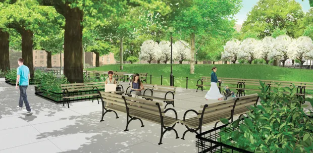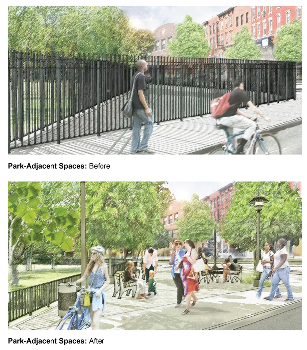 纽约市公园正在使用两个基金来引入“无边界公园”项目。其中一个是4000万美元的资金,将用于重建五个公园,每个公园800万美元。其余的1000万美元基金将用于调整已经在计划中的项目,强调改善人行道和景观。这些拨款由市长的 OneNYC运动资助。