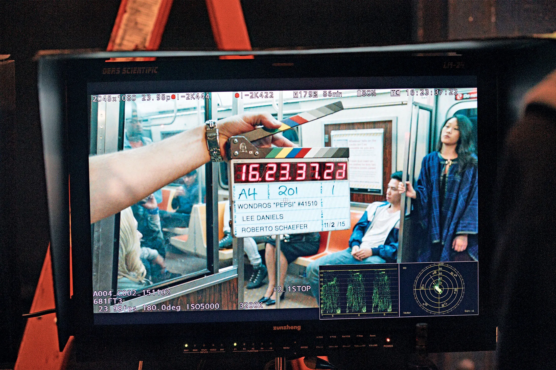 在十一月初的一个星期一下午,百事可乐和帝国的制作人聚集在废弃的地铁站,这里是纽约交通博物馆的所在地,拍摄广告。斯莫莱特饰演的贾马尔走进一辆曾经的地铁车厢,车厢里挤满了通勤者。一个家伙抬头,认出了贾马尔,扔给他一罐百事可乐。贾马尔喝了一口,微笑着。斯威兹·比兹的节拍响起。突然,大家都开始跳舞。丹尼尔斯在附近微调着欢乐的舞动。