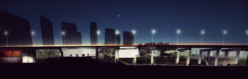 基础设施本身将被用于承载Project: Under Gardiner的功能。高架高速公路高约50英尺,由55个“支撑”或混凝土跨度支撑。这些将形成项目空间的自然分隔,并支持照明和其他机械需求。“对于公共工程来说,高速公路的骨架结构提供了一个强大的美学起点,”Bozikovic写道。