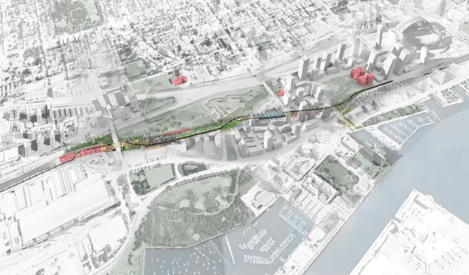 所以多伦多仍然必须与高架高速公路共存。但这座城市并不一定喜欢它。由于多伦多无法(或不愿)完全撤销加尔德纳高速公路,城市正在围绕它进行规划。项目:加尔德纳下方,一个公私合营的公园合作项目,可能是应对这一问题的最佳方式。