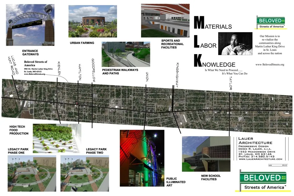 为此,怀特与位于圣路易斯的 劳尔建筑进步设计公司和建筑非营利组织 创意交流实验室合作。他们共同为圣路易斯的马丁·路德·金大道制定了一个多方面的振兴计划,希望这能成为其他城市的模板。