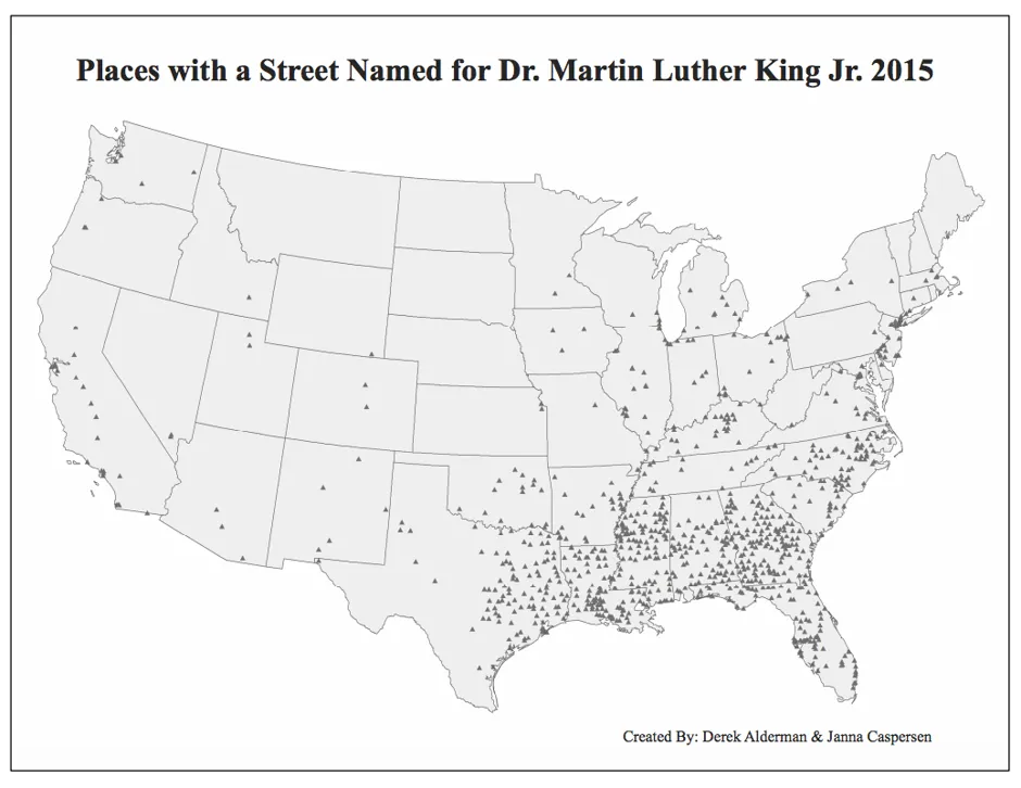 “它们是更大种族主义历史和地理的一部分,”德里克·奥尔德曼说,他是田纳西大学的文化地理学者,自1990年代初以来一直研究和撰写以马丁·路德·金命名的街道。“所以当你在庆祝实际上帮助克服一些种族主义的民权运动时,你仍然会被提醒非裔美国人面临的障碍。”