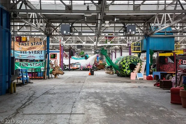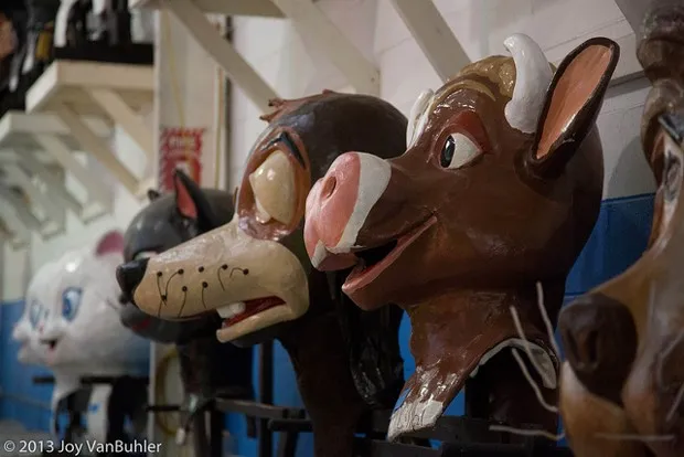 游行公司仓库和工作空间,位于底特律。Joy VanBuhler/Flickr这些超大头部的外观像是海滨木板路的漫画素描:长脖子、突出的眼睛、巨大的、露齿而笑的笑容。你如何让角色在观众席顶端的观众中可识别?“你必须找到那些真正让[他们]突出并看起来像[他们自己]的东西,”丹尼尔森去年向当地电视台WDIV解释道。