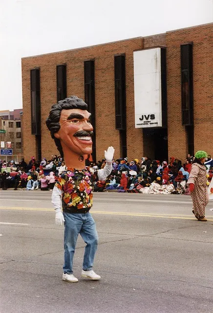 这些巨大的头部——最初从意大利的维亚雷焦镇进口——于1940年代加入了底特律的年度感恩节游行。到1970年代,它们的数量减少了。这些精致的物品陷入了失修,直到2013年的一次修复努力,底特律新闻报道。一些重新投入使用的数百个头部可以追溯到第一波进口;其他则是由游行公司工匠最近制作的,他们学习了这一技艺。