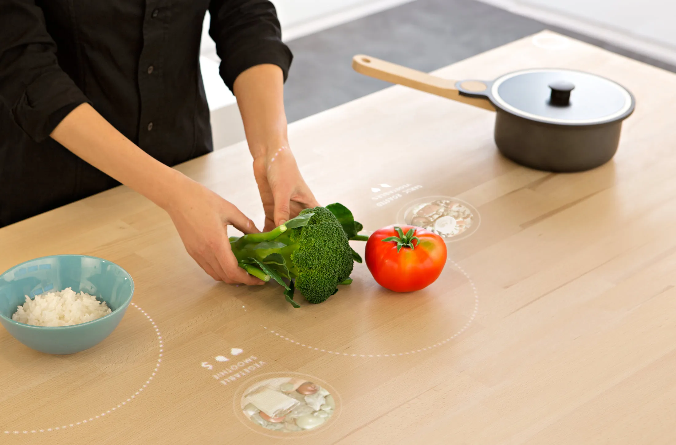 形式与功能宜家的生活桌可以检测其表面的食物和成分,并建议食谱和准备技巧。