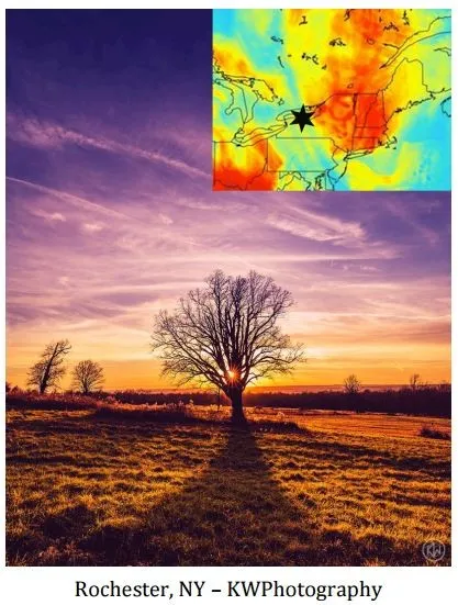 在一个 案例研究中,模型在11月17日的模拟结果大部分是正确的。比如,这里是纽约西部的绚丽天空盛宴: