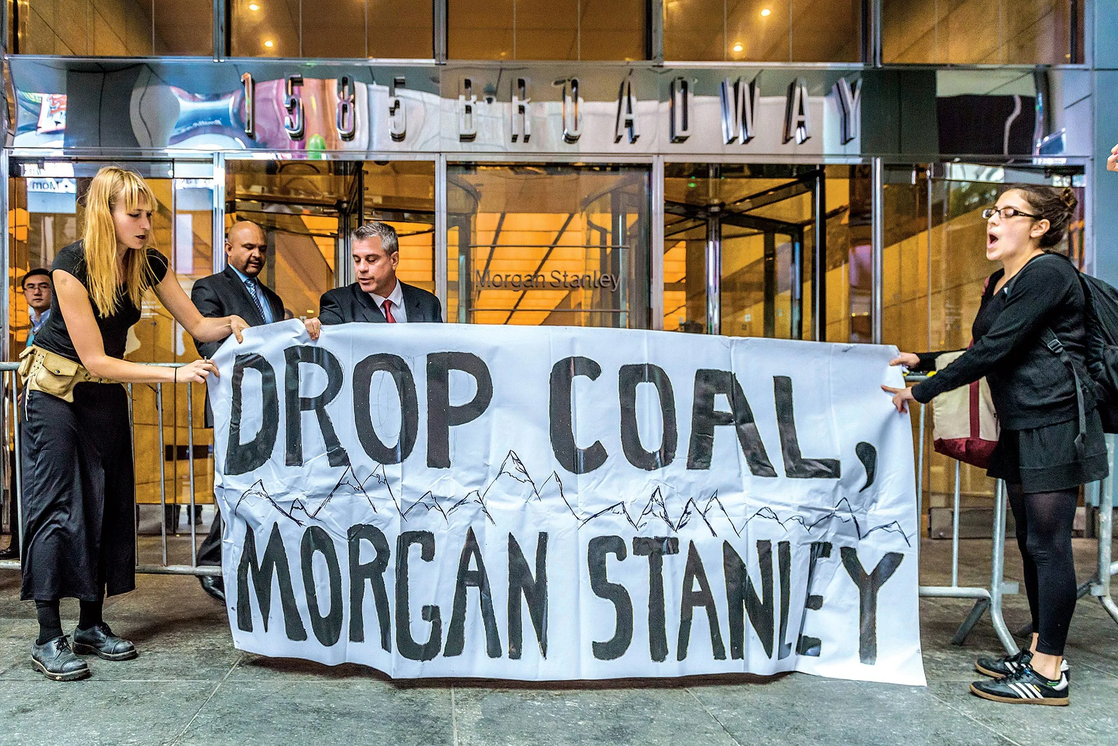 11月19日的示威活动似乎并不是那种会导致一家投资银行巨头停止向化石燃料投资的事情。但赞助这一运动的组织正在取得成果。在抗议活动两周后,摩根士丹利宣布将削减对煤矿的资金,并承诺在融资决策中考虑环保组织的观点。它拒绝对活动人士发表评论。今年还有其他八家全球银行做出了类似的承诺。这超出了许多养老金基金和大学捐赠基金所做的。哈佛大学的校长已经驳回了学生们对煤炭、石油和天然气撤资的呼吁。