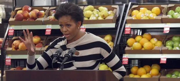 第一夫人米歇尔·奥巴马在2011年10月发表关于食品沙漠的演讲。弗兰克·波利奇 / 路透社任何健康饮食倡议都必须从获取健康食品开始,但不能止步于此。下一步是建立消费者需求——这就是教育可以发挥作用的地方。对于马丁内斯-多纳特来说,沃帕卡研究展示了医疗设施、学校和工作场所之间合作的重要性,以教育消费者并强化零售环境的营养变化。