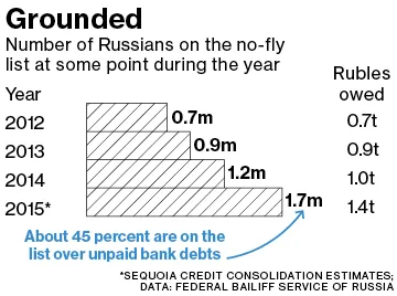 俄罗斯的信用局表示,拥有三笔或更多未偿贷款的人数——这是银行的一个红旗——自年初以来下降了37%。坏消息是?仍然有310万俄罗斯人处于最有可能拖欠的类别,此时他们也可能失去离开该国的权利。