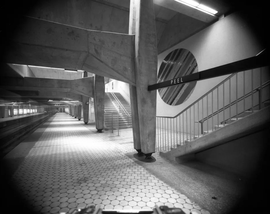 皮尔地铁站来源:BAnQ/Fonds PGL ArchitectesPGL 设计了 皮尔站,这是一个混凝土杰作,于1966年系统启用时首次亮相。他们还设计了1967年世博会的魁北克馆。倾斜的玻璃盒子得到了 纽约时报 建筑评论家阿达·路易斯·哈克斯特的赞誉,她称其为“展览的黑马”并将其重要性与米斯·范·德·罗的1929年 巴萨罗那馆 相提并论。