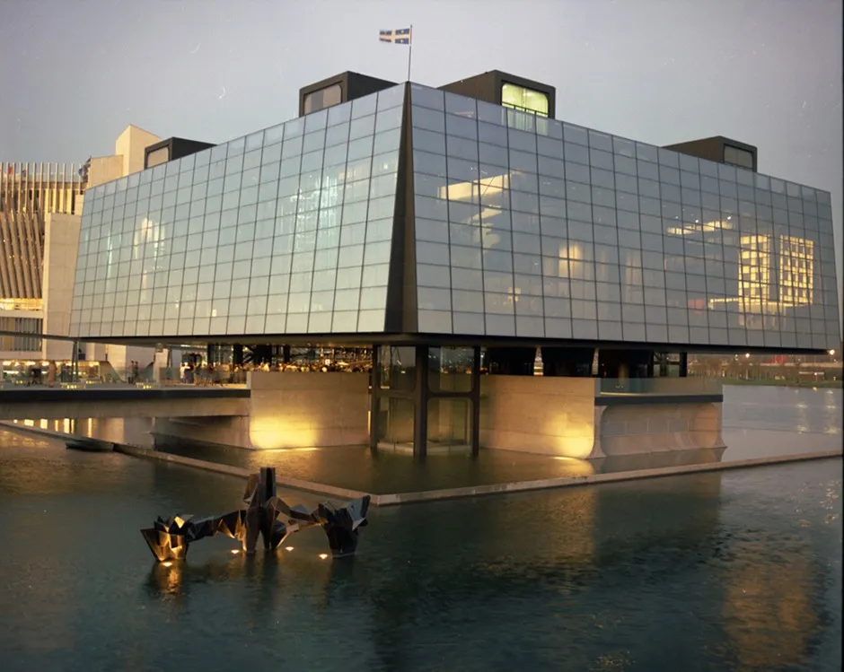在一个日益高涨的主权运动中,它在省内的意义更为深远。“展览内部是如此有趣,”马丁说。“它谈论的是一个国家通过技术的解放,以及现代性能够为魁北克带来的美好承诺。这是一座惊人的建筑,就像一个从底部打开的盒子,里面有一种想要释放的力量。在阳光明媚的日子里,它是全蓝的,晚上就像是商店的窗户。反射与透明同时存在。”