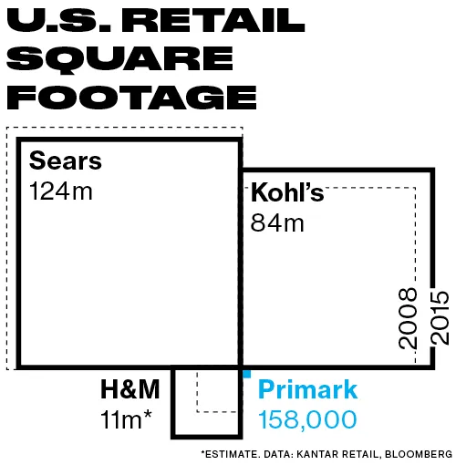 Primark正在进入一个竞争激烈的零售环境,最近使一些曾经火热的品牌如美国服装和Abercrombie & Fitch停滞不前。扩张正发生在另一家美国零售受害者Sears留下的空白中,该公司正在出租其放弃的Primark空间。