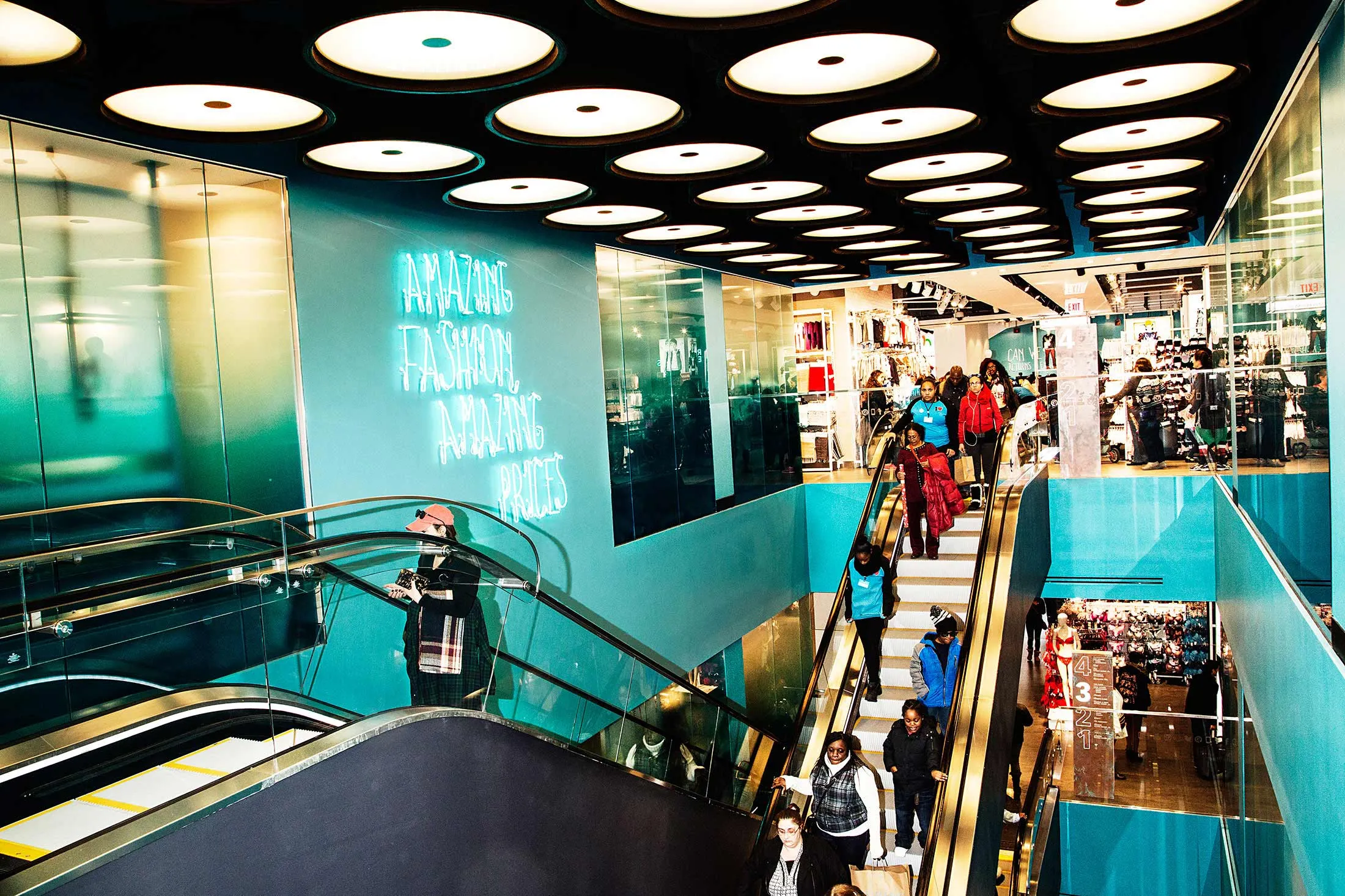 摄影师:艾米·隆巴德为《彭博商业周刊》拍摄弗兰克斯说,人群变得如此密集,以至于看到5或6英尺以下的东西就像试图通过一群蜜蜂阅读便签。这意味着价格标签必须放得很高,指示牌也必须放得高,以告诉人们在这个71,000平方英尺的商店中该往哪里去,该店的最大容纳人数约为3,200,在繁忙时段接近这个数字。