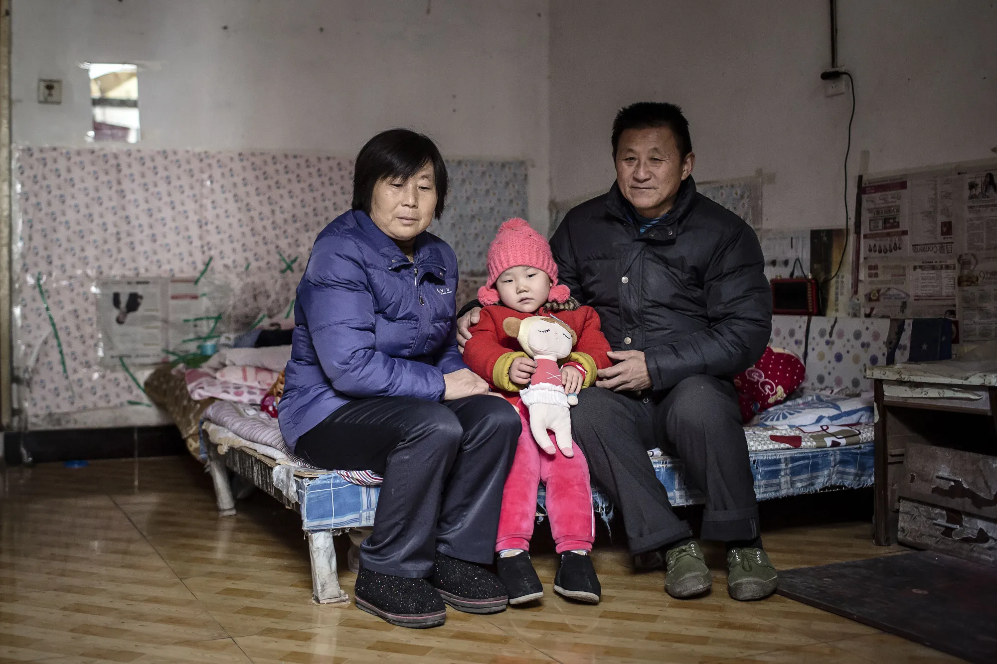 不在医院时,晶晶和她的祖父母住在一个约10平方米的贫民窟房间里。墙壁上贴满了旧报纸以吸收湿气。地上的床垫根据一天的时间充当午餐桌、沙发或床。