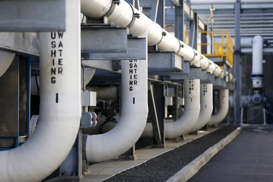 一名工人经过用于反渗透过程的管道行列。美联社照片/格雷戈里·布尔