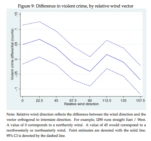 NBER结论是:在他们位于州际公路的下风侧的日子里,社区的暴力犯罪——谋杀、强奸、攻击和殴打——比上风日子多出大约2.2%。对财产犯罪没有影响。更重要的是,暴力犯罪的增加主要是由加重殴打的逮捕驱动,而加重攻击的逮捕实际上减少。也就是说,罪犯与受害者的身体接触变得更加频繁。
