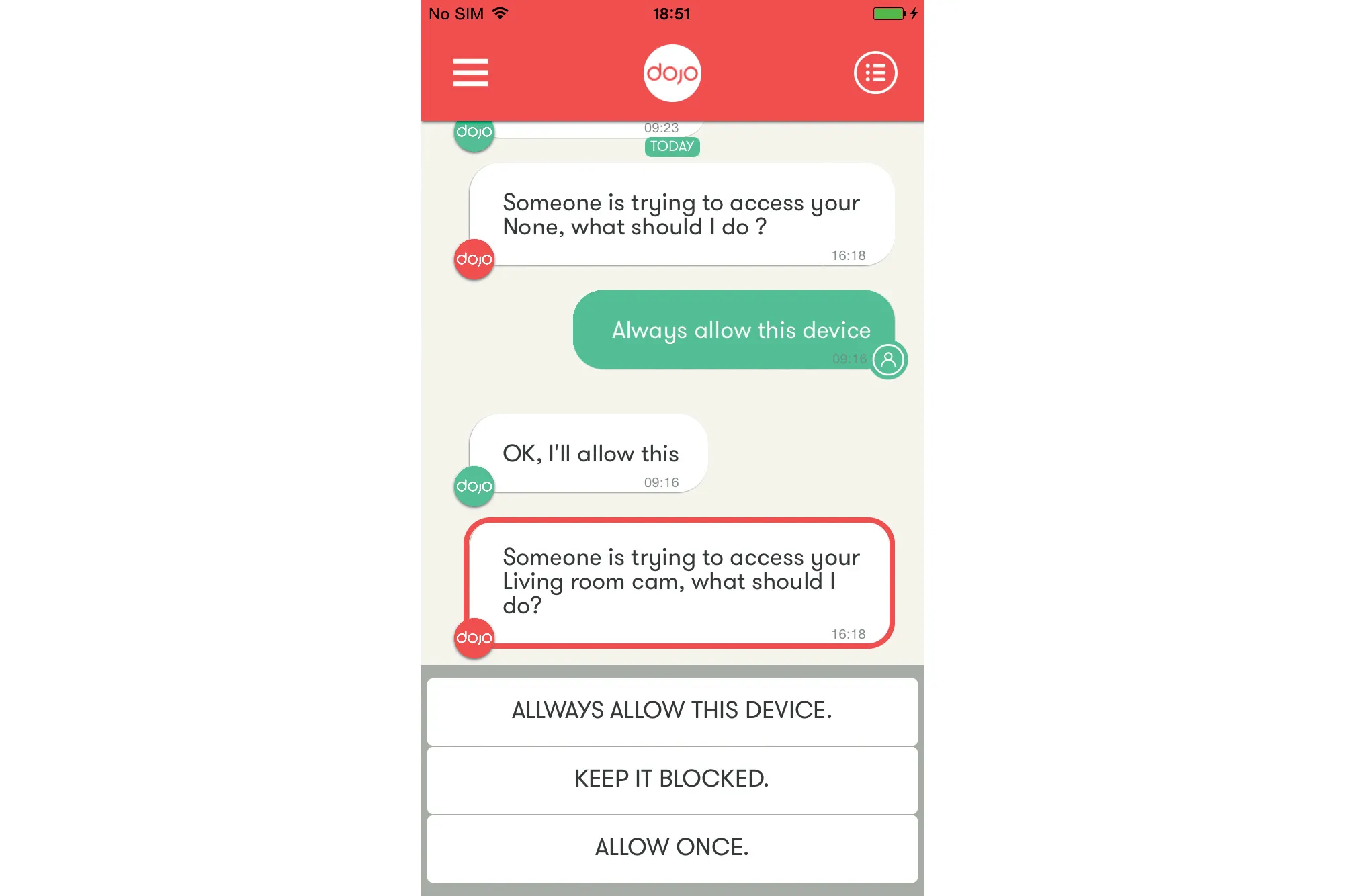 习惯的生物 Dojo并不监控通信内容,而是扫描异常活动——例如有人试图从互联网访问你的婴儿监视器。