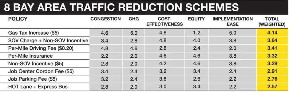 对旧金山湾区8项交通拥堵减少政策的排名 - 彭博社