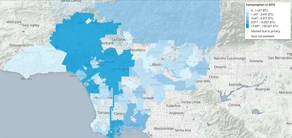 加州大学洛杉矶分校能源地图展示洛杉矶县的电力和天然气消费 - 彭博社