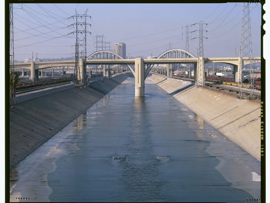 根据Film LA,这个帮助电影行业预订市政地点的组织,每年在第六街高架桥上或下方拍摄超过80部电影、电视节目、音乐视频和广告。这部分是因为桥的弯曲金属拱门,坐落在一个艺术装饰风格的混凝土平台上;部分原因是下面的河流和那个通道:如果你想拍摄一些与洛杉矶汽车文化相关的内容,或者如果你只是想找一个比拥堵的高速公路更便宜、更容易拍摄的汽车追逐场景,洛杉矶河的渠道化、混凝土化的河床是你最好的选择。