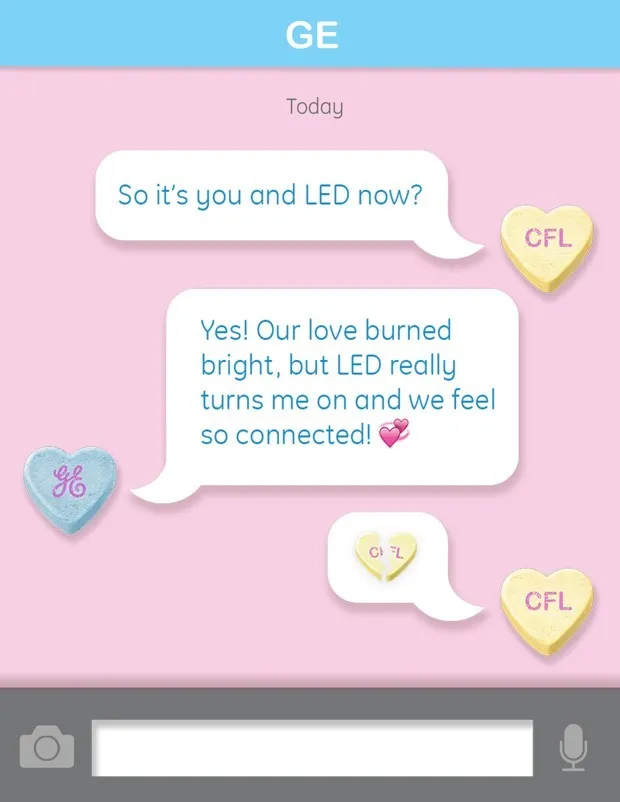通用电气实际上以一封(出乎意料地适合千禧一代的) 分手信的形式发布了这个消息,作为企业新闻稿来说,里面的双关语密度相当高:“你时而开启,时而关闭……LED是我的未来,而我的未来无法更光明。”强大的节能灯泡,沦为情人节主题的笑话。这不禁让人问:为什么美国花了这么多时间和精力争论灯泡的8轨带?