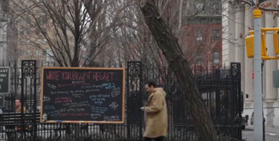 在一个 视频 中,上周发布的媒体公司A Plus记录了当路过的行人被要求停下来用五彩粉笔倾诉他们的遗憾时发生的事情。黑板在广场前悬挂了一整天,回应的内容,从“没有获得MBA”到“没有说‘我爱你’”,都表达了对未抓住机会的懊悔。