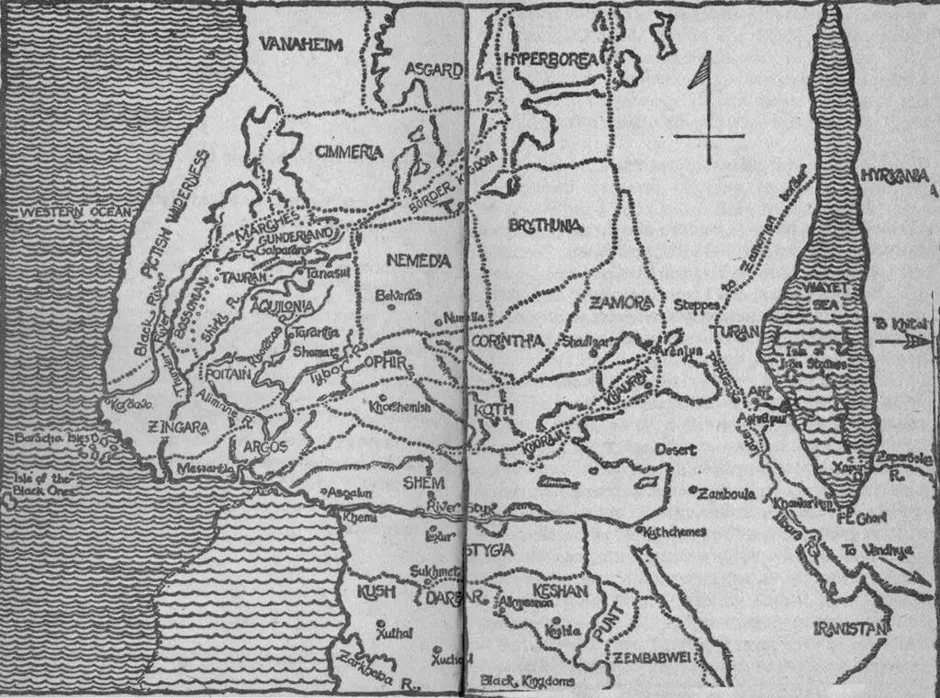 扫描由埃里克·罗登贝克提供。“最好的书籍都以地图开始。我在《指环王》中的地图、艾伦·弗斯特关于二战边缘的惊人小说中的任何一张地图,以及《柯南》书籍中的地图(由艾斯出版的)之间犹豫不决。但最后,我不得不选择《柯南》。”