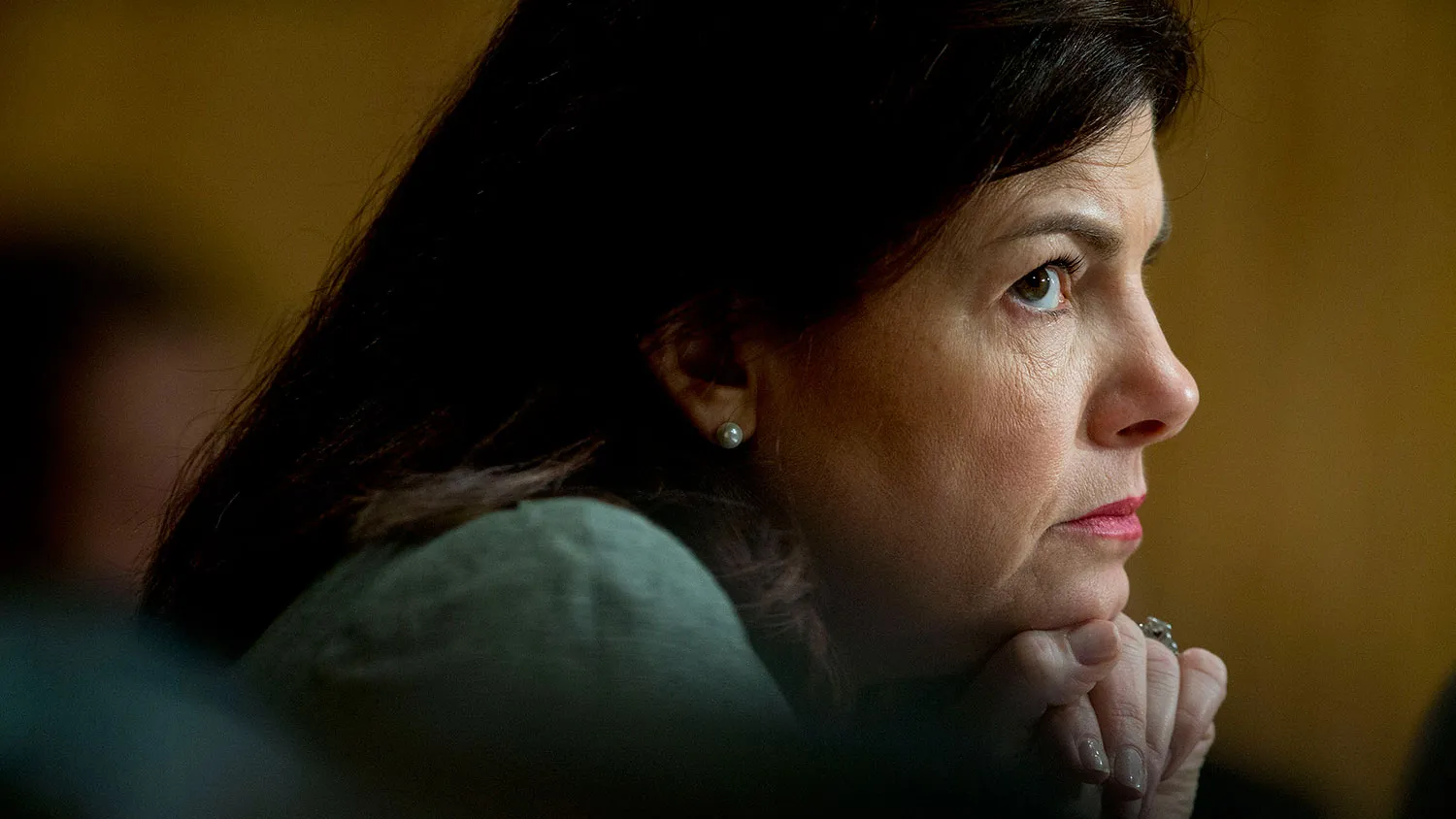 参议员凯莉·阿约特在2015年7月30日华盛顿举行的参议院常设调查小组听证会上倾听。