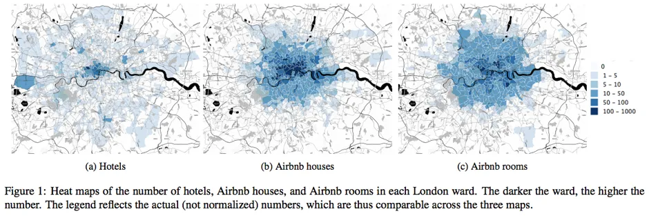 换句话说,随着时间的推移,Airbnb的供应超出了理想的高收入市中心。然而,在实际需求方面,Quercia和他的合著者并没有发现任何这样的分布。Airbnb的客人继续在住房市场特征为“年轻、精通科技、受雇、受过良好教育和多民族居民”的邻里租赁和评论单位。尽管伦敦的郊区低收入住房市场有租赁供应,但需求并没有与之匹配。