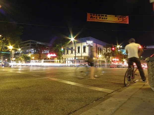 明尼阿波利斯的亨内平大道,其中一部分将受到新的自取餐条例的影响。Flickr/nullrend自取餐在城市化地区尤其危险,因为司机不习惯在骑自行车和步行者周围驾驶。正如邓巴赫所解释的,这些司机更可能“自动化他们的驾驶任务”——向前看向交通车道,忽视了就在他们面前的人。