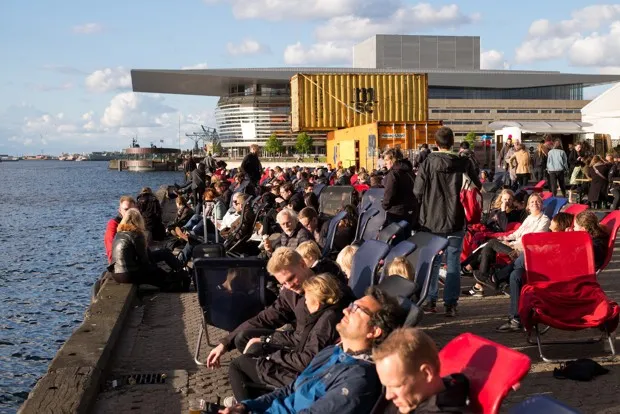 纸岛海滨的人群。罗曼·博德 / Flickr除了相对的可负担性,岛屿的吸引力显而易见。它虽然简陋,但立刻吸引人,其朴素的混凝土建筑被宏伟的历史仓库环绕,提供了美丽的水景。它也位于市中心。哥本哈根的新 歌剧院 就在北边,而世界著名的餐厅 Noma 则在南边。但在通往邻近岛屿的桥梁尚在建设中时,这里仍然感觉稍显封闭,只能通过渡轮或稍微绕远的另一座桥到达。背靠部分重新开发的码头,这个地区在一个主要西方城市的中心地带显得愉快而不受管理。