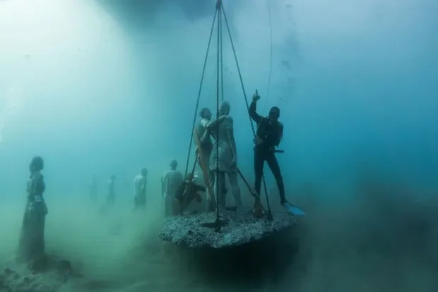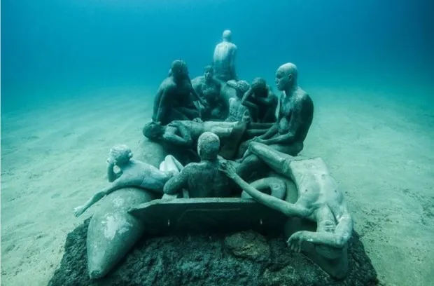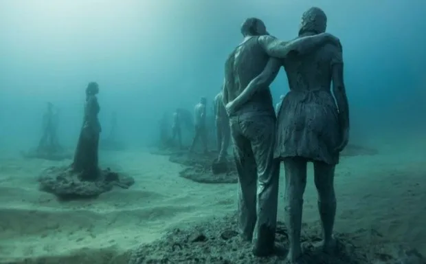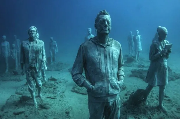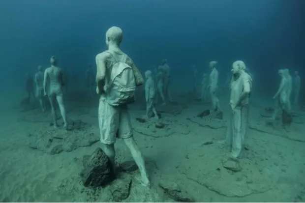 这些令人不安的雕塑是新的 大西洋博物馆的一部分,位于摩洛哥海岸附近的兰萨罗特岛的水下“博物馆”。它们是由 杰森·德凯尔斯·泰勒建造的,他是一位英国艺术家、环保主义者和潜水教练,曾在 坎昆和 格林纳达 安装过其他沉没的雕塑。(他在巴哈马创作的 60吨女孩,看起来像是支撑着海洋的表面,据说是“世界上最大的单体水下雕塑。”)