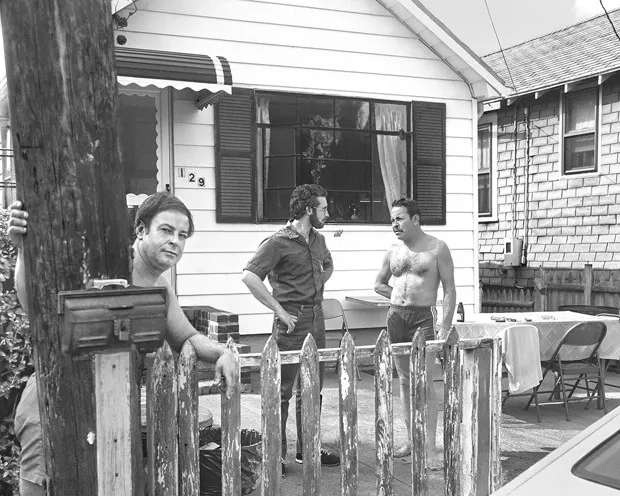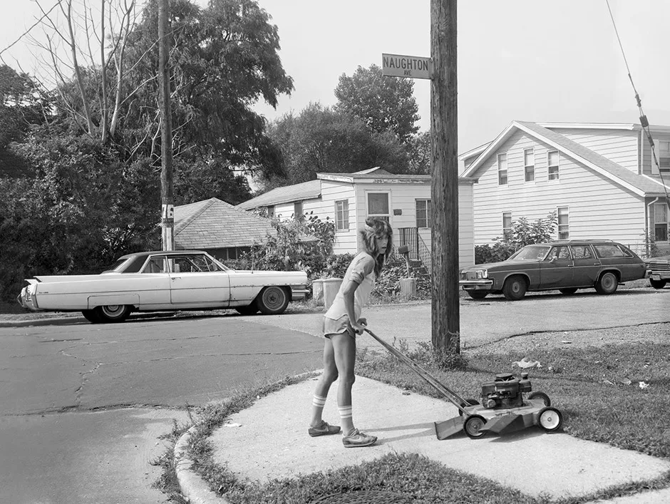 奥辛斯基拍摄了擦洗过的乙烯基外墙、整洁的草坪和偶尔剥落油漆的栅栏。她还将目光投向社会仪式:邻居们聚在一起喝啤酒和聊天;两个年轻女子的头发被梳得蓬松,似乎在等待着什么激动人心的事情发生。