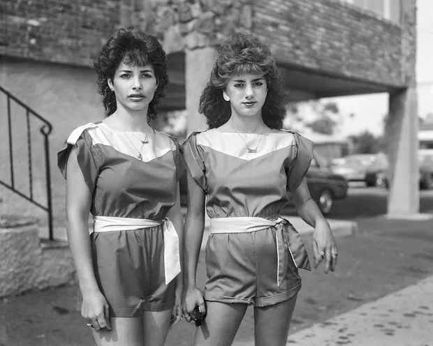 穿着相配服装的两个女孩。克里斯汀·奥辛斯基带着相机四处游荡帮助奥辛斯基与她的新家建立联系。“问题是,当你出去拍照时,你是在观察——你真的在用你的眼睛,”她说。“你在看东西并思考,‘什么是有趣的?’”