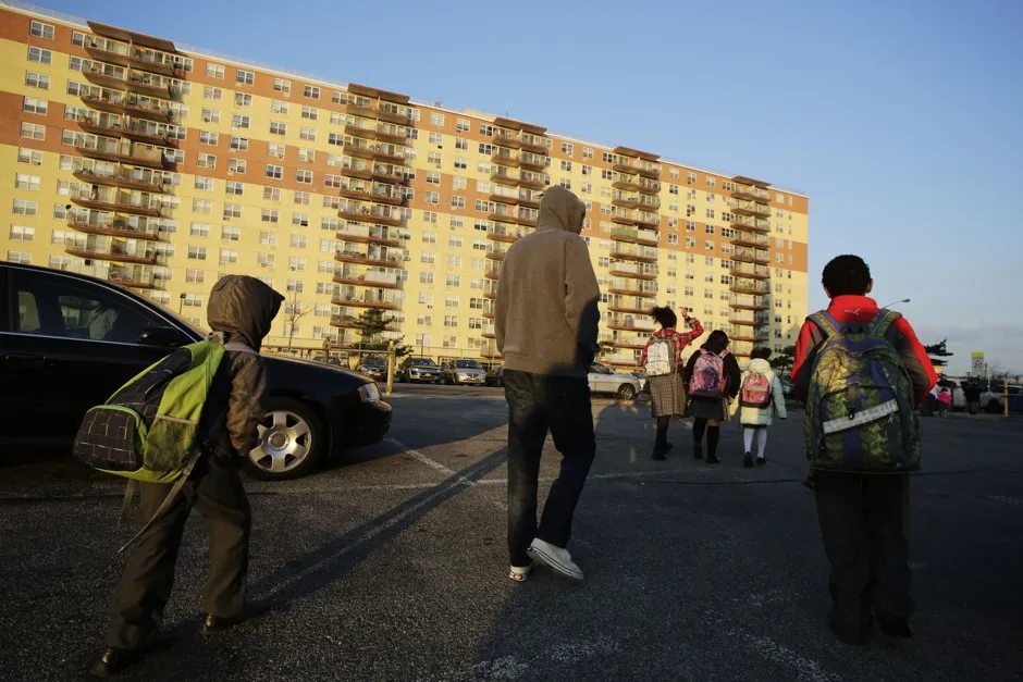 一名男子带着他的孩子在洛克威上学。马克·伦尼汉 / 美联社种族隔离也很严重,从西向东,人口从以白人为主转变为以非裔美国人和拉丁裔为主。自桑迪以来,重建工作已经启动,但卡斯科表示,这并没有改善流动性。许多旅游收入流向其他地方的公司,由于当地几乎没有可供购物或工作的地方,常住居民的资金也流出。