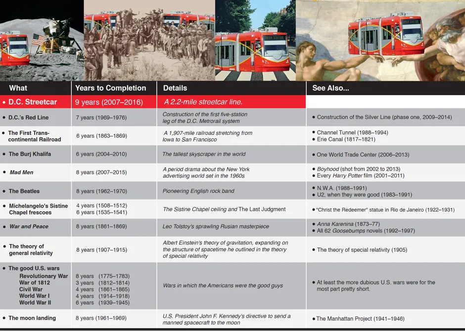显然,建设一条电车线路并不容易。但很多事情都不容易。很多事情需要政治资本和财务承诺。而且很多事情所需的两者都远远超过华盛顿特区电车——而且仍然能够在不到大约九年的时间内完成这条单一的电车线路。