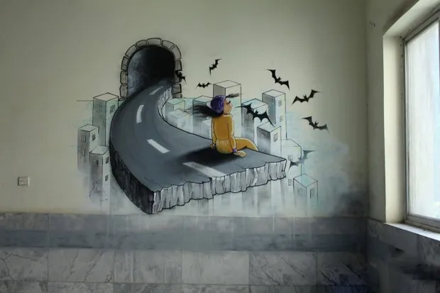 来自Shamsia Hassani的“无国之鸟”系列,在喀布尔大学。Facebook/Shamsia Hassani