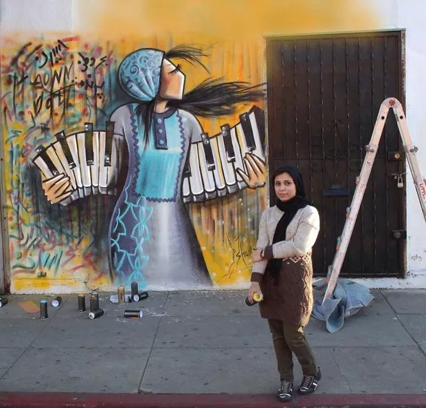 沙姆西亚·哈萨尼与她在洛杉矶西亚当斯大道上绘制的壁画。Facebook/沙姆西亚·哈萨尼尽管在美国享有艺术自由,哈萨尼表示,作为一名街头艺术家,在画廊创作与在喀布尔街头创作之间存在很大差异。她说,展出在画廊或展览中的作品只被那些总是参加画廊和展览的小群体所看到。街头艺术的意义在于让作品及其信息对每个人都可及。“在阿富汗,当你在画布上绘画时,大多数人无法看到它。我们没有很多画廊或展览。我在喀布尔的街头绘画的原因是因为我想向那些从未见过艺术的人展示艺术,”她说。