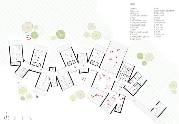 这不仅仅是一个附加在标准教育模型上的美化的丰富项目。《幼儿园田野永存》将完全取消教室,转而在户外和温室中学习;课程将根据季节轮换,以“沿着基于自然周期的轨迹展开,”aut- -aut的网站描述道。