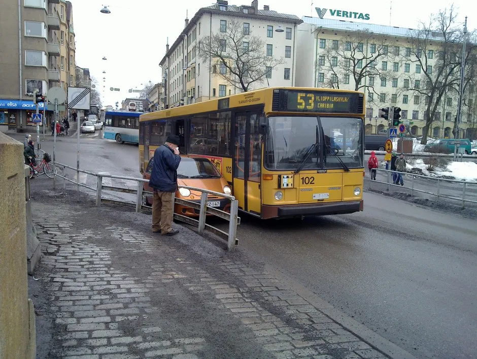 芬兰图尔库,一辆汽车和一辆公交车争夺空间。Flickr/亨利·哈格纳斯芬兰城市图尔库为司机提供了一个相当诱人的交易:申请公交卡即可获得一部分免费旅行。