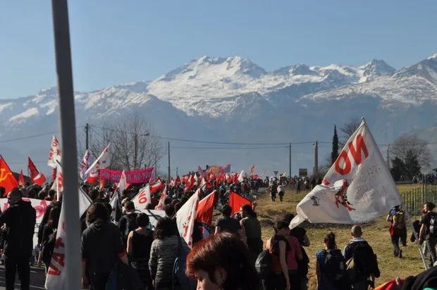 意大利瓦尔德苏萨的高速铁路抗议者示威。Flickr/Corteo no Tav反对者还声称,用于证明这一开支的成本效益分析不可靠。一 压力团体来自山脉的意大利一侧,他们表示,这条连接线预计将在新铁路上运输1910万吨货物。考虑到当前未改进的铁路隧道在2014年仅清理了330万吨货物,他们认为,这似乎是对未来增长的极为乐观的估计,即使考虑到未来连接线的更大吸引力。